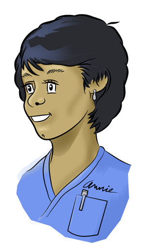 Annie is a nurse. She heads to MAX's each day after work... still in her scrubs... just to hang with her friends in her happy place!